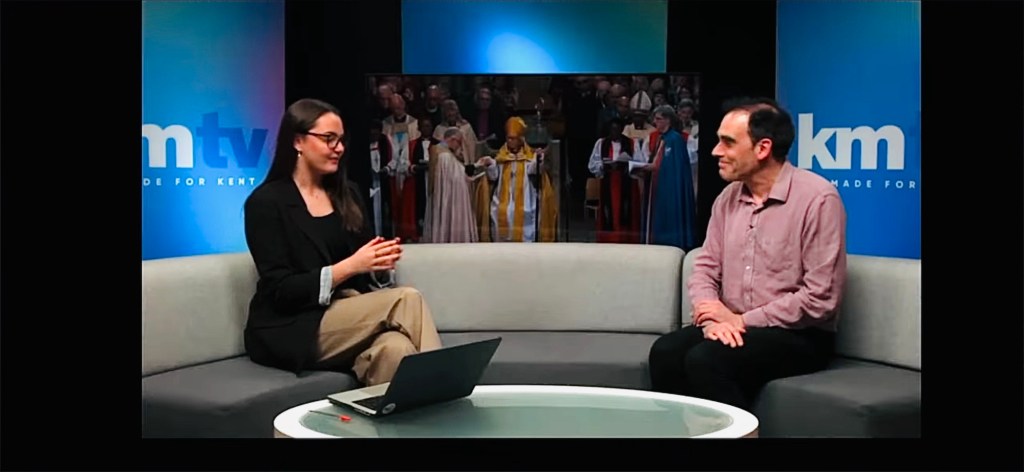 Chris Deacy talking to Chloe Brewster on KMTV Kent Tonight about the significance of the installation at Canterbury Cathedral of Dame Sarah Mullally as the first female Archbishop of Canterbury.